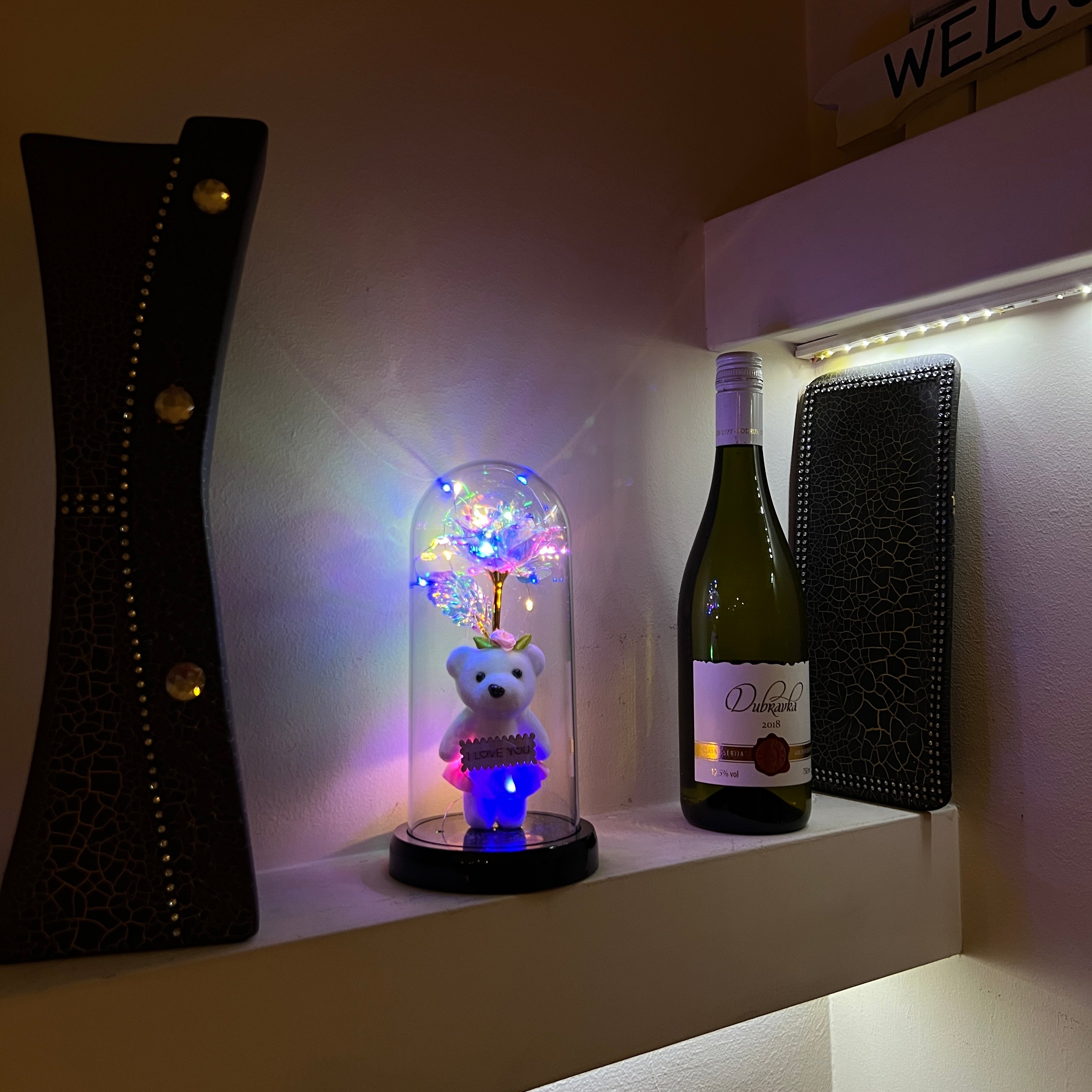 Ruža koja se nalazi u staklenom zvonu prelivena je sitnim kristalima što daje neverovatan efekat kad se upali!