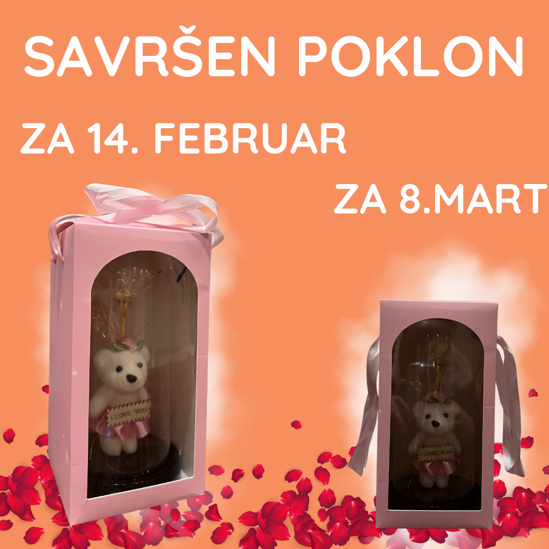 Za dodatan romaničan efekat medvedić drži poruku 'Volim te'.